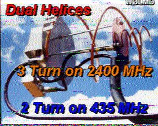 Have been continuing to test SpaceCam1 thru AO-40. The satellite is continuing to do well and the pictures Tx and Rxed are very good . A couple of examples are attached with an exchange I made with W0LMD las night when AO-40 was at a range of over 26000 miles. Robert, W0LMD has arranged a 10 foot TVRO dish with both 435 and 2400 Helix feeds and is able to both Tx and Rx from his dish. One of the pictures shows these feeds. He gets excellent reception.